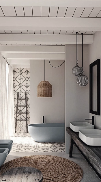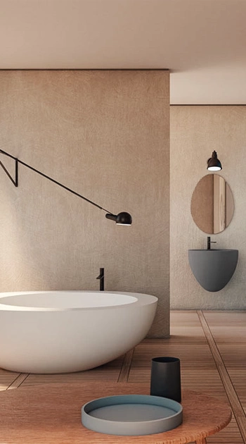 La ricercatezza di ogni dettaglio emerge nell’impiego dei prodotti di altissima qualità, che danno vita a meravigliosi rivestimenti, pregiati sanitari e arredi bagno, creando un’atmosfera suggestiva e accogliente.